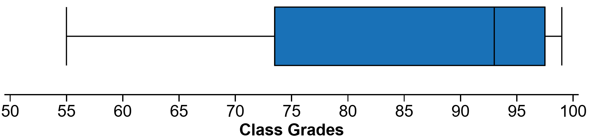 In their response, the person with a PhD in statistics mentioned shape (“left skew”) and context (“class grades”). However, they failed to explicitly discuss outliers (they didn’t say “there don’t appear to be any outliers”), center (they didn’t say “the median is about 93”), and spread (they didn’t say “the IQR is about 24”). With three of five components missing, depending on the strictness of the rubric, they may earn partial credit or no credit for their response.
